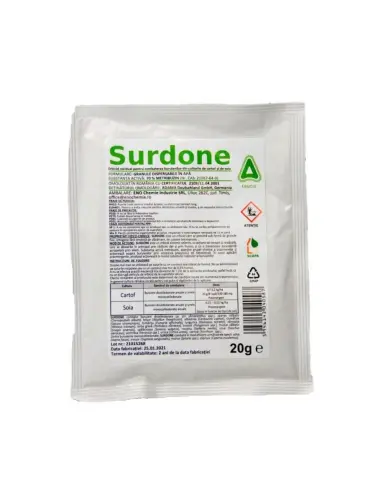 _ Erbicidul SURDONE ambalat la 100 g se aplica intr-o cantitate de apa de 30 L.